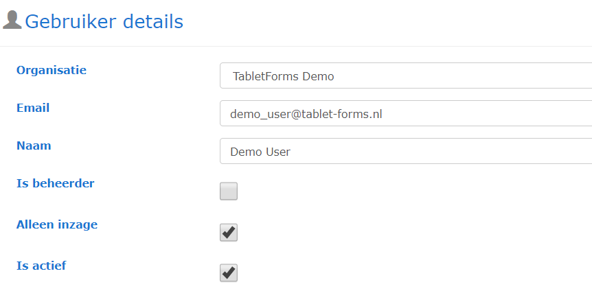 Het is mogelijk om een gebruiker alleen inzage rechten te geven.
